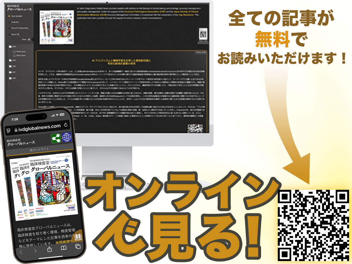 いつでもどこでも、世界中の臨床検査に関する注目記事を閲覧できます。全てのバックナンバーも使いやすいモバイルブラウザーでご利用いただけます。