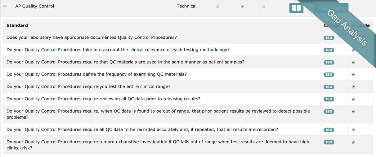 The first step in your laboratories QMS journey is to determine the gaps in your current quality management as determined by the accreditation body you seek to be in compliance with. LEAP makes this process simple by grouping