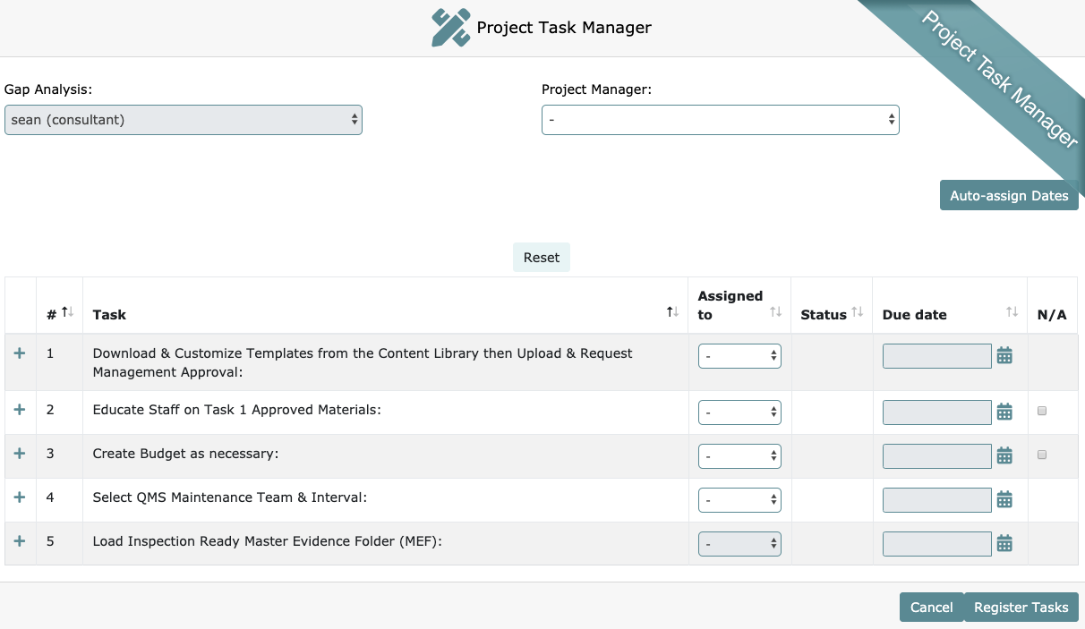 Once the project has been created, LEAP will allow you to assign different members to that project, allowing for efficient work assignment and distribution as well as further involving all relevant staff in the quality management process.
