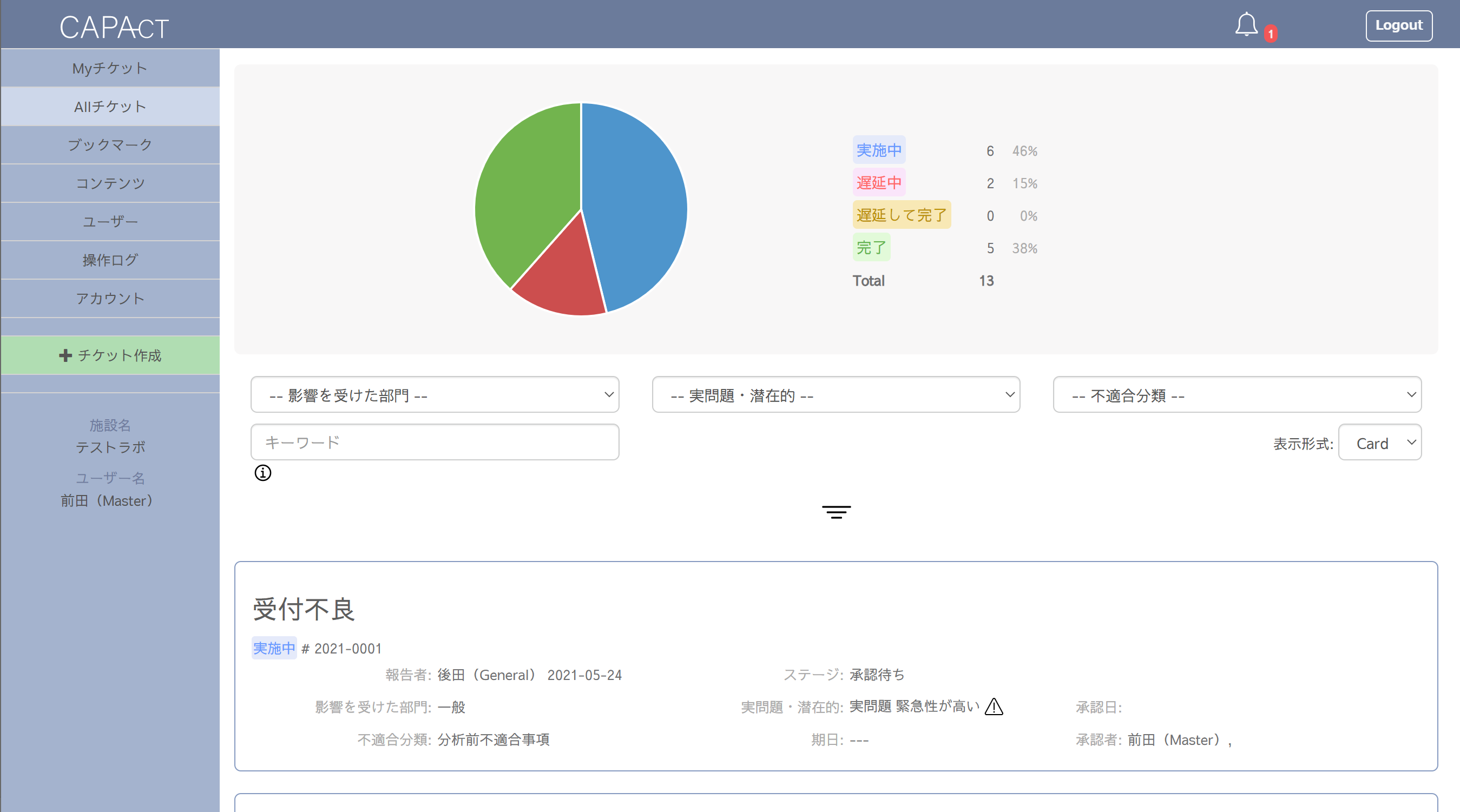 蓄積されたCAPAデータは集計・可視化が可能で、発生傾向や対応状況を統計的に把握できる点が、紙管理では得られない大きな特長です。